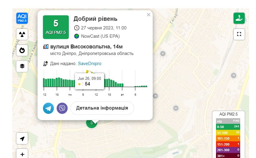 За даними незалежного сайту, який відстежує якість повітря в Дніпрі, показники рівня забруднення знаходяться в межах норми.