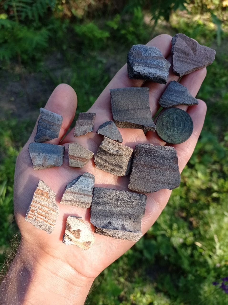 Після візуального огляду за 20 хвилин ми виявили значну кількість фрагментів кераміки, скла, кременю. Коли то все помилося, проявилися гарний декор та деталі. Є серед знахідок фрагменти посуду, яким кілька тисяч років. Значна ж частина - більш пізня і може датуватися 18-19 ст, - розповіли міські дослідники.