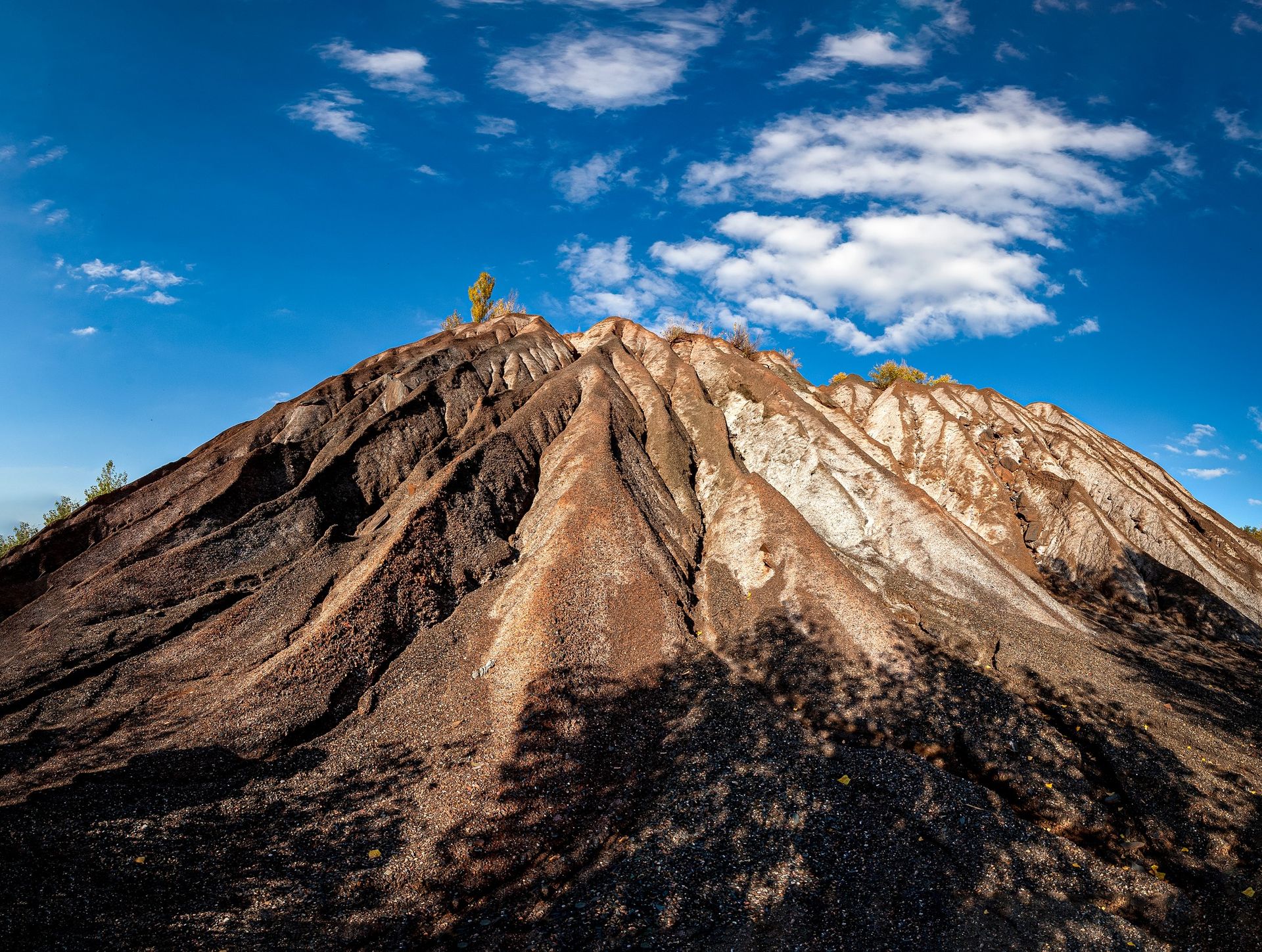 Здалеку насипи відпрацьованої гірської породи справді схожі на гори, у кратерах яких може бурлити лава. Є навіть характерні застиглі ріки, які б утворилися, якби з верхівки дійсно текла гаряча суміш.