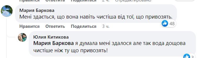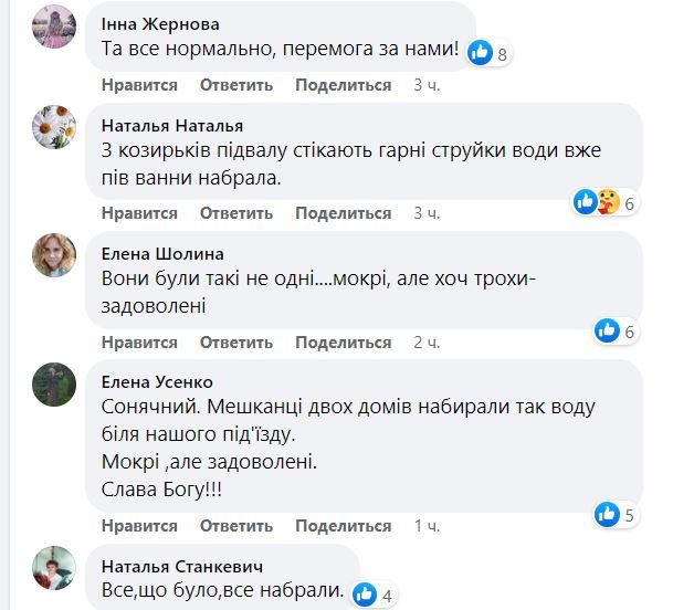 Люди "хваляться" своїм "уловом" і кажуть, що потоки води з даху дуже хороші. Деяким вдалося понабирати по пів ванни. Ба більше, марганчани стверджують, що дощова вода іноді чистіша ніж та технічна, яку почали привозити до міста.