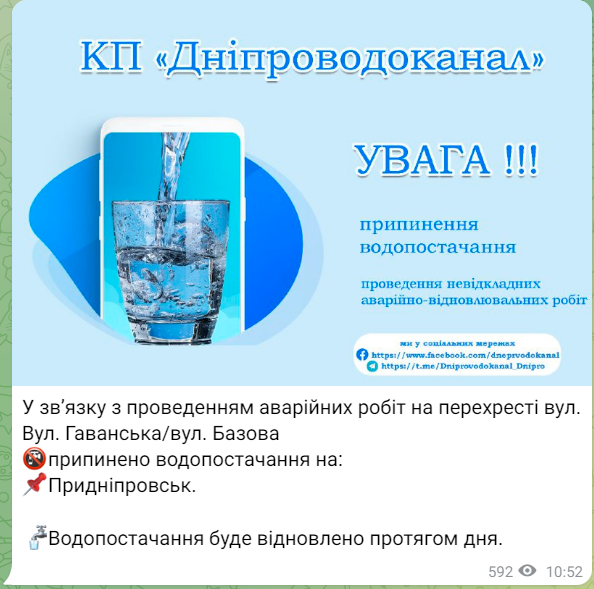 Про це повідомили у КП "Дніпроводоканал".