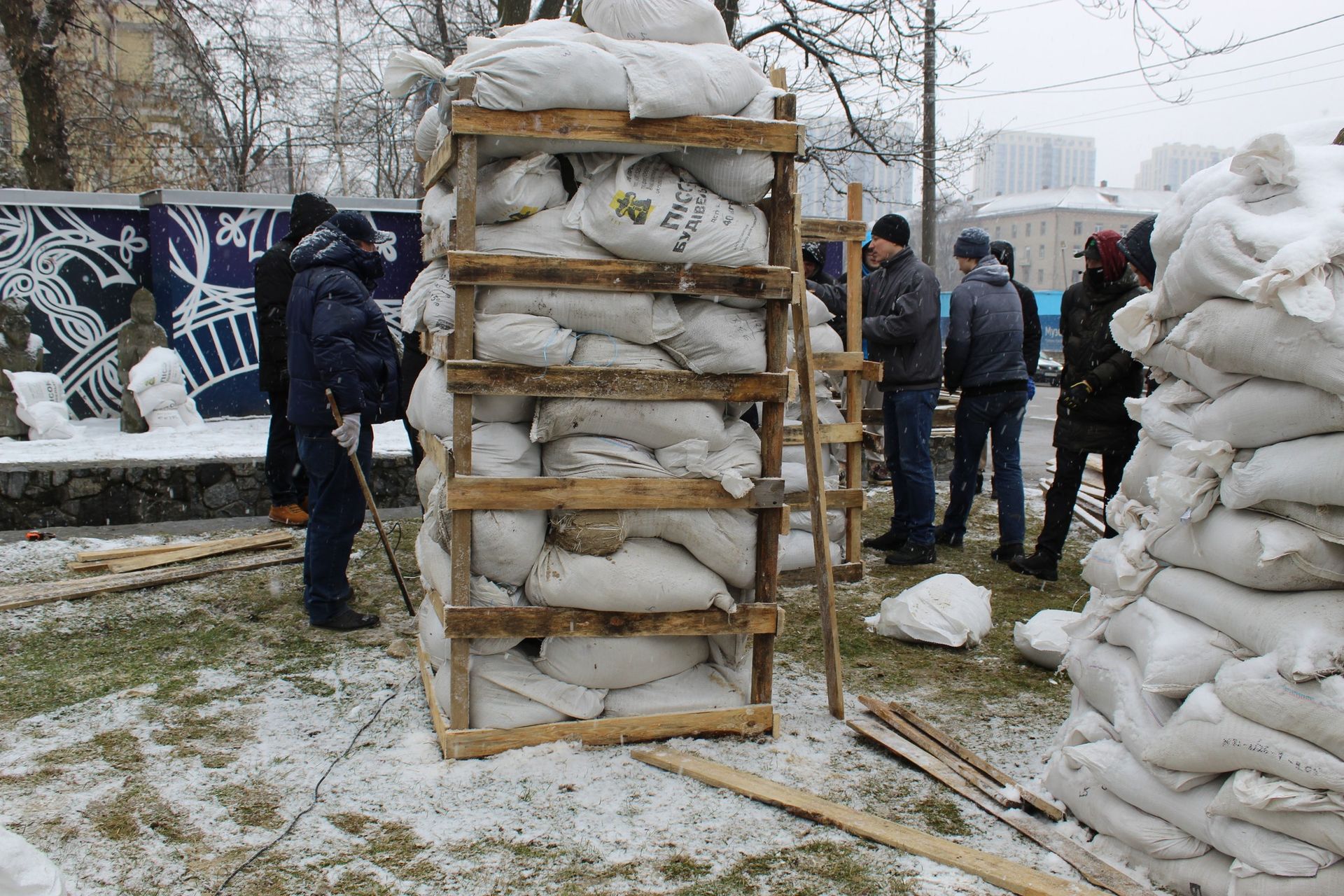 З початком російської повномасштабної агресії "баби" одягли "броніки". Спочатку це були мішки з піску по периметру статуй, пізніше для них зробили кевларові конструкції - усе для того, щоб захистити цінні статуї на випадок ворожих атак.
