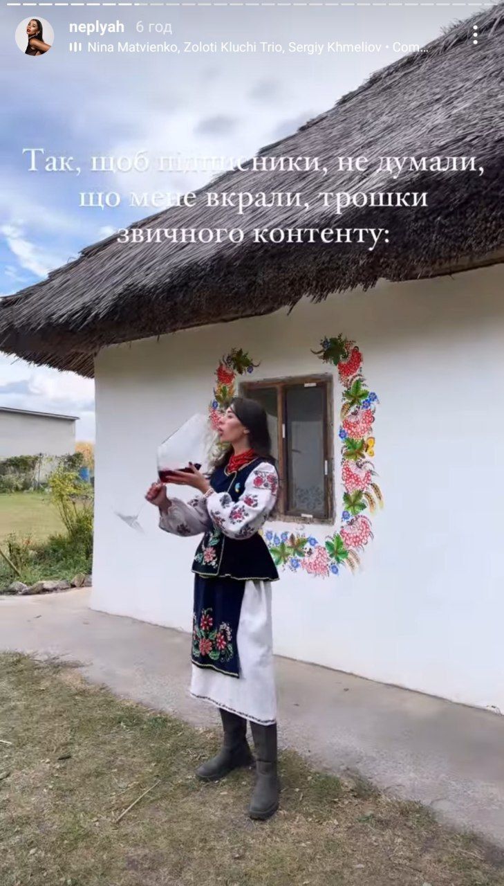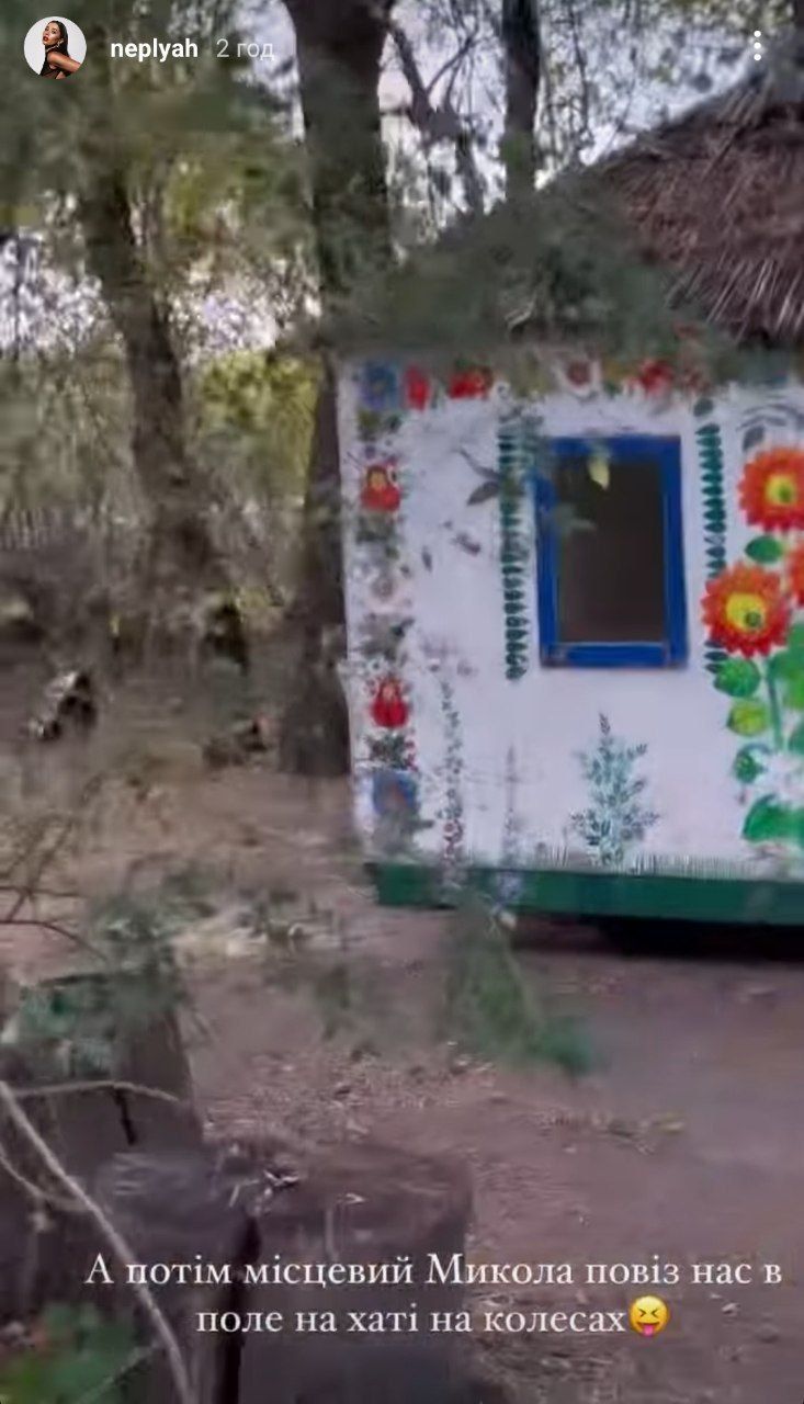 Цього разу дівчина спробувала відтворити петриківський розпис, вдягнулася в традиційне вбрання та навіть покаталася в хаті на колесах, яку створив місцевий житель Микола. Що цікаво, цей дивний транспорт раніше знімався у кліпі "Калуша".