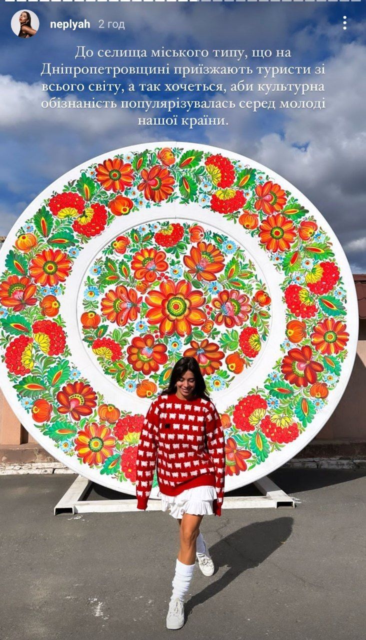 У своїх Instagram-stories вона поділилася враженнями від поїздки до Петриківки. За словами 29-річної Анни, востаннє у знаменитому селищі вона була в 11 років, під час шкільної екскурсії.