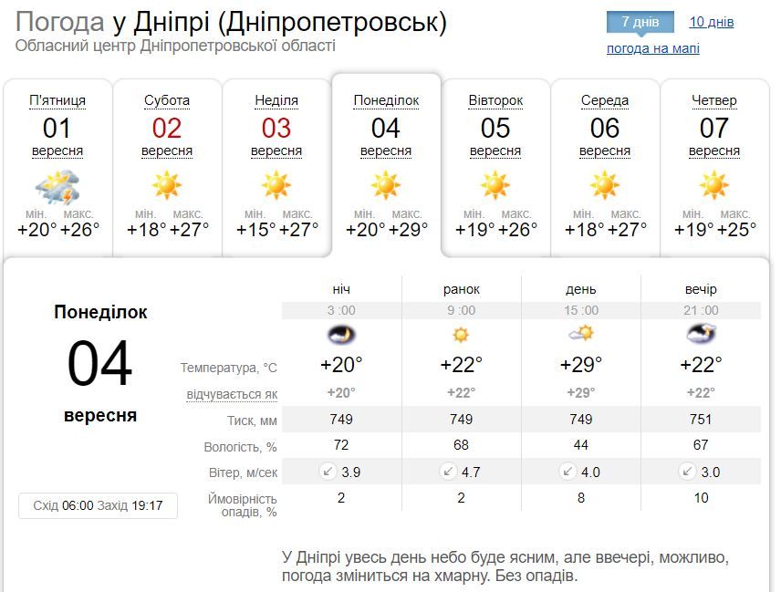 Попри те, що в перший день осені Дніпро накрила злива з градом, до міста ще повернеться спека.