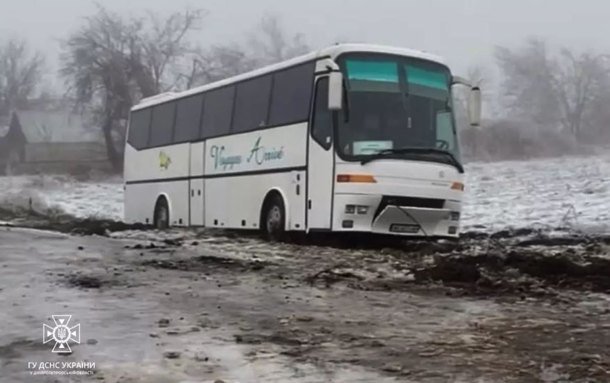 На Дніпропетровщині автобус з пасажирами злетів у кювет та застряг в снігу
