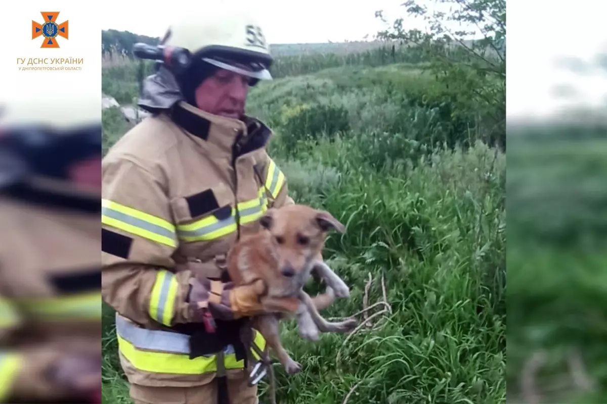 На Дніпропетровщині чотирилапа впала у 4-метрову яму зі сміттям: її діставали рятувальники