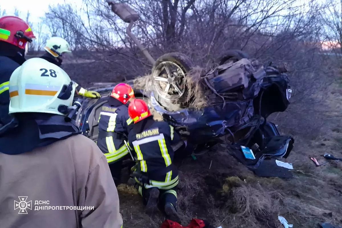 На Дніпропетровщині на трасі BMW злетів у кювет та перекинувся: водія затисло в авто