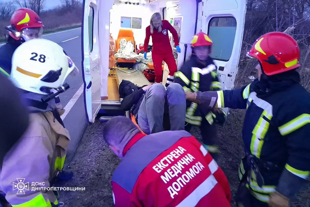 Рятувальники за допомогою шанцевого інструмента деблокували 27-річного чоловіка з салону пошкодженого легковика. Постраждалого госпіталізували до лікарні.