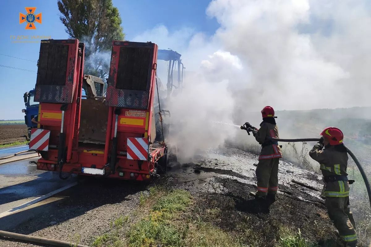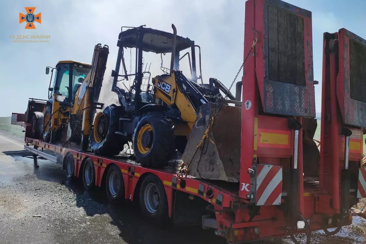 На Дніпропетровщині на трасі горів причіп з двома тракторами (ФОТО)