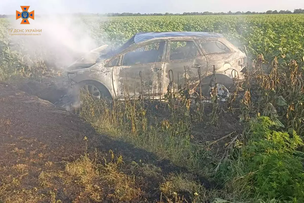 На Дніпропетровщині на трасі Mazda з’їхала в кювет та загорілася (ФОТО)