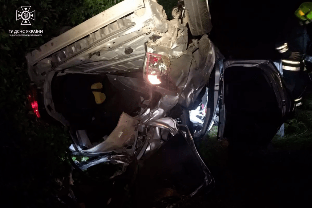 У Кривому Розі вночі з легковика, який з'їхав у кювет і перекинувся, рятувальники вирізали потерпілого водія.