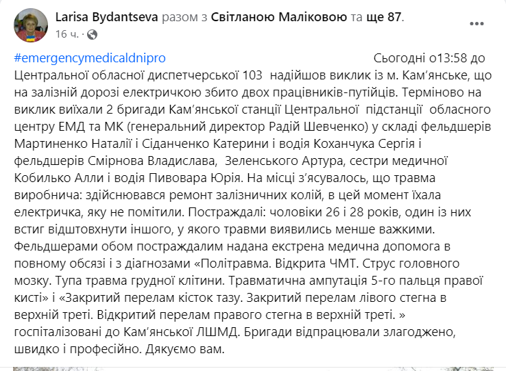 Постраждалі залізничники отримали серйозні травми. Їх госпіталізували до лікарні. В якому вони стані зараз - невідомо.
