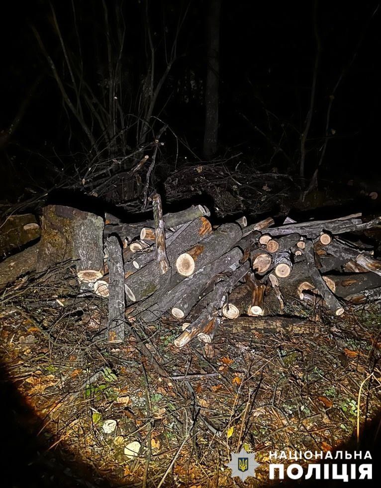 На місці вирубаних дерев знайшли вантажівки зі вщент заповненими кузовами деревини, причепи зі спиляними деревами, бензопили та інші докази злочинної діяльності зловмисників. Виявлені речові докази поліцейські вилучили.