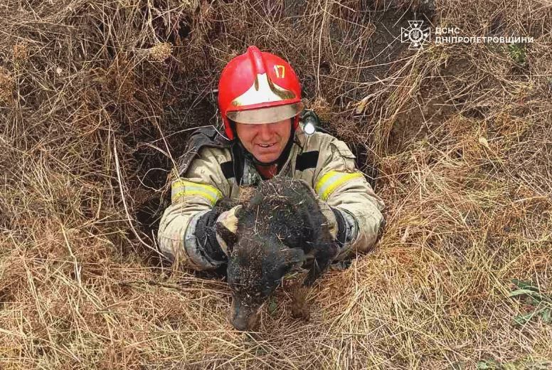 На Дніпропетровщині рятували собаку, яка звалилася в замаскований колодязь