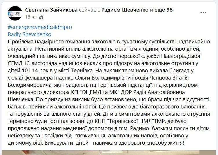 13 листопада до диспетчерської служби Павлоградської СЕМД надійшов виклик про двох неповнолітніх дітей, які мали ознаки отруєння. Сталося це в місті Тернівка.