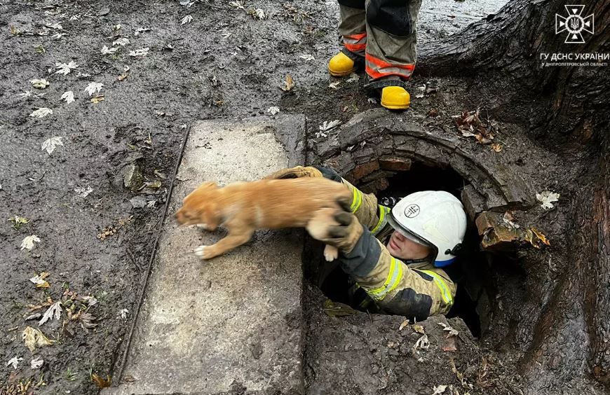По прибуттю до місця події рятувальники встановили, що поблизу багатоквартирного житлового будинку у відкритий люк впали три цуценя. Один із співробітників Служби порятунку спустився у люк та підняв на поверхню наляканих тварин.