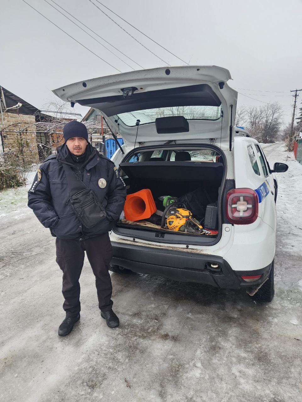 На Дніпропетровщині поліціянт рятував літню панянку, яка застрягла у своєму будинку через обледеніле дерево.