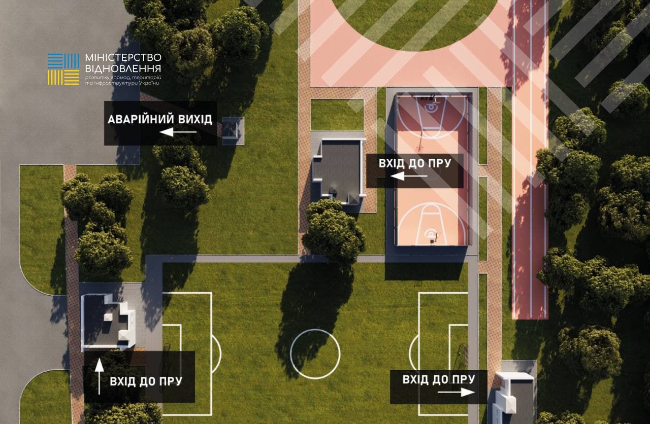 ПРУ (протирадіаційне укриття - ред.) являє собою окремо розташовану підземну монолітну залізобетонну споруду зтрьома евакуаційними виходами сходових клітин на поверхню землі. Входи обладнані захисно-герметичними дверима, - йдеться в описі проєкту.