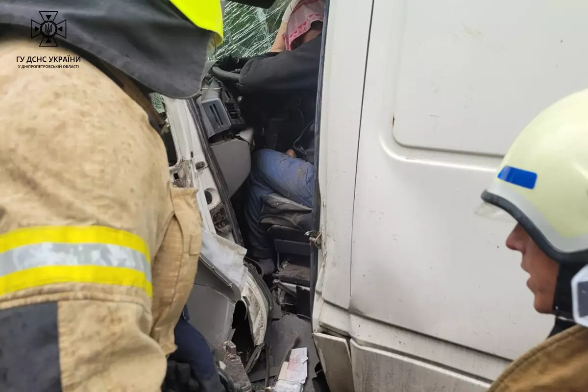 На Дніпропетровщині зіткнулися фура та мікроавтобус: одного із водіїв діставали рятувальники (ФОТО)