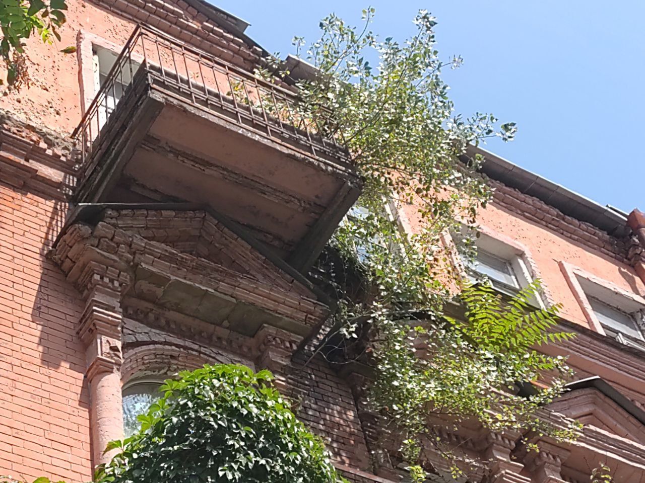 На фасаді ростуть дерева, а з балконів падає каміння: у центрі Дніпра доживає свій вік старовинний будинок (ФОТО)
