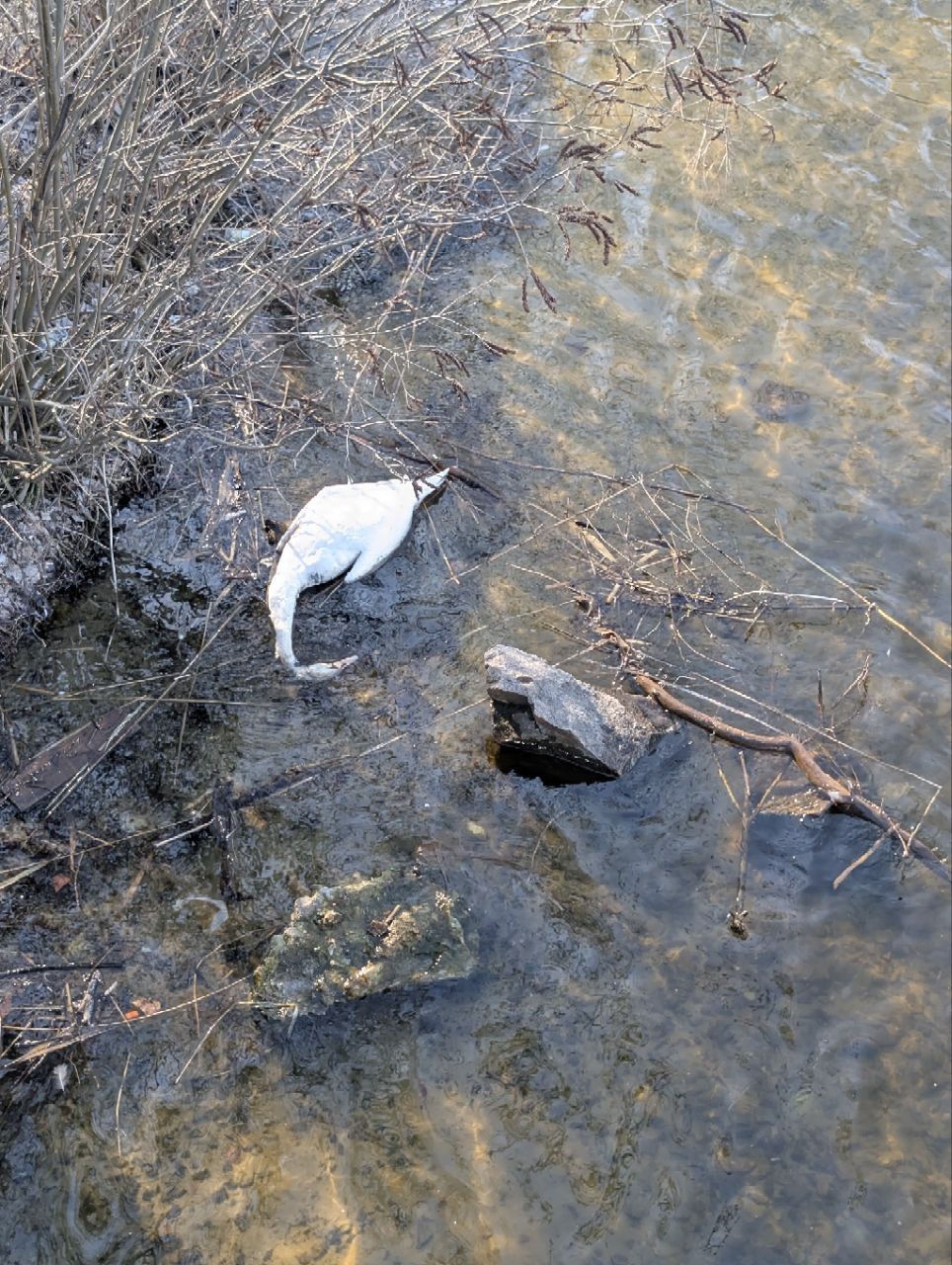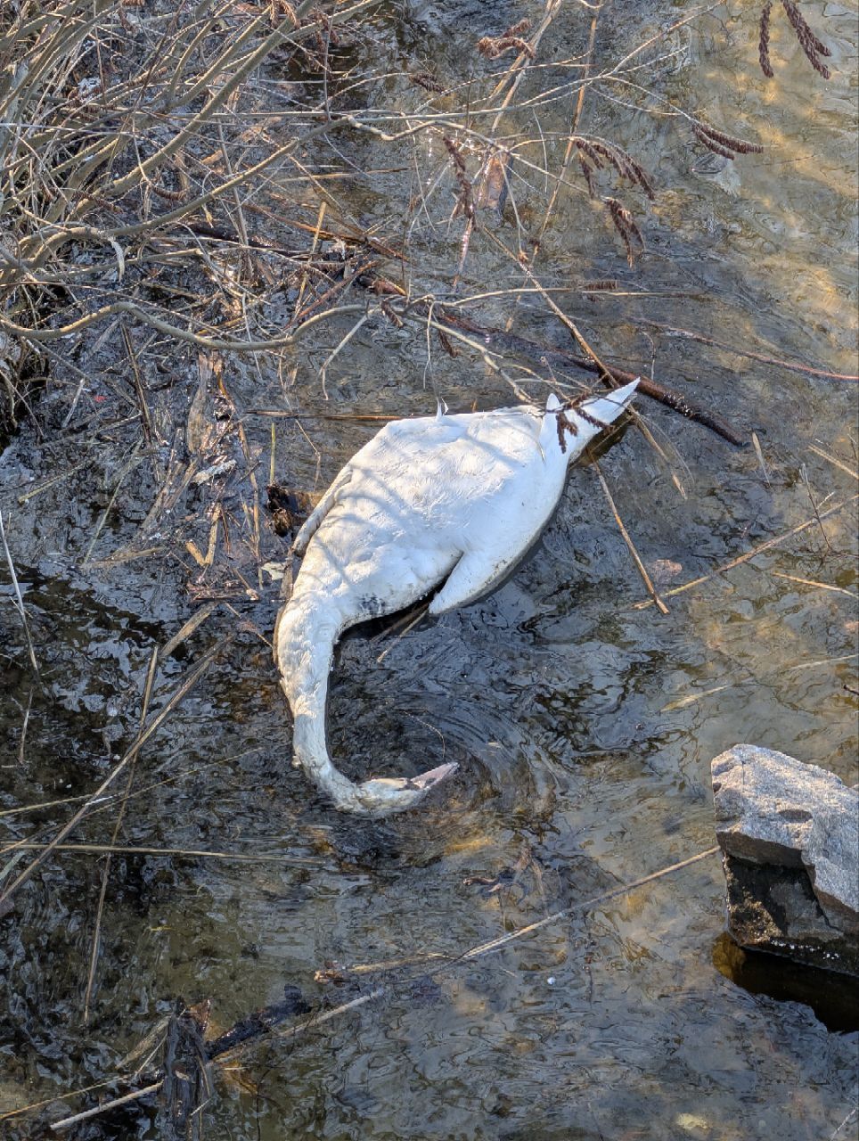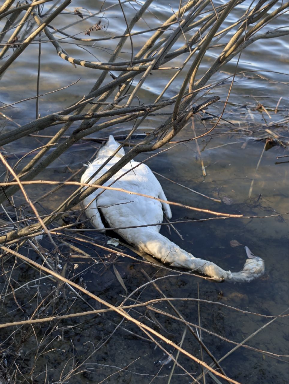 У Дніпрі містяни помітили померлого лебедя на березі річки.