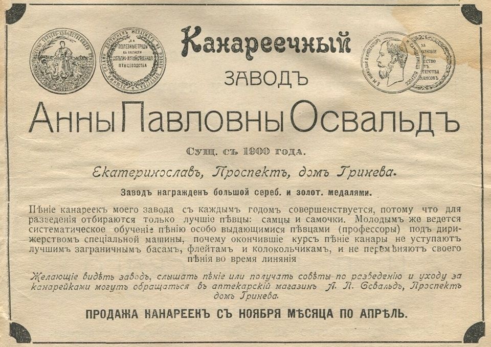 На території Дніпра у позаминулому столітті існували пташині "заводи", де вчили канарок