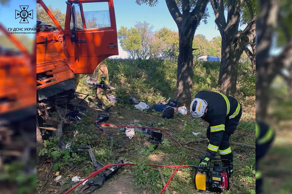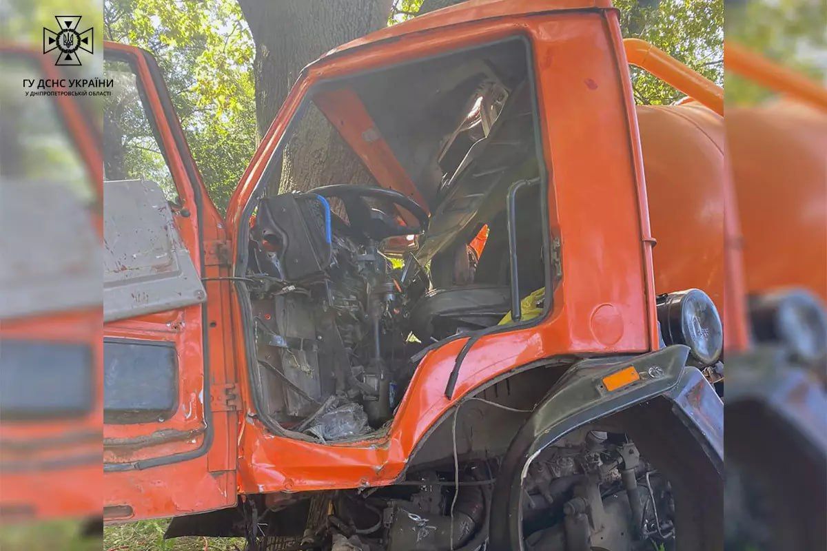 На трасі Дніпро-Миколаїв "Камаз" з'їхав у кювет та врізався в дерево: є постраждалі