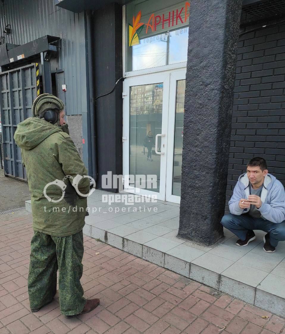 У районі житлового масиву Покровський помітили дивного чоловіка, який був одягнений, як російський танкіст. На голові в нього шолом, а куртка та штани зроблені з тканини, яка нагадує російський військовий "піксель". Фотографії опублікували в телеграм-каналі "Дніпро Оперативний. Війна".