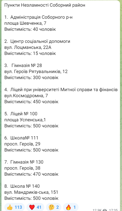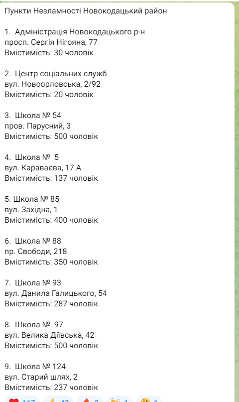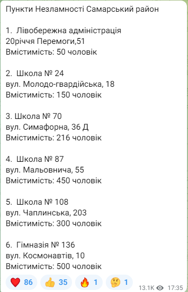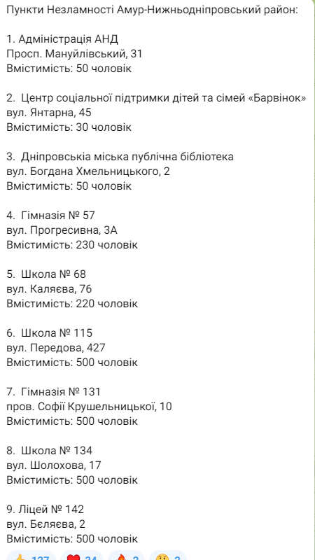 Міський голова Дніпра Борис Філатов опублікував список пунктів незламності по районах.