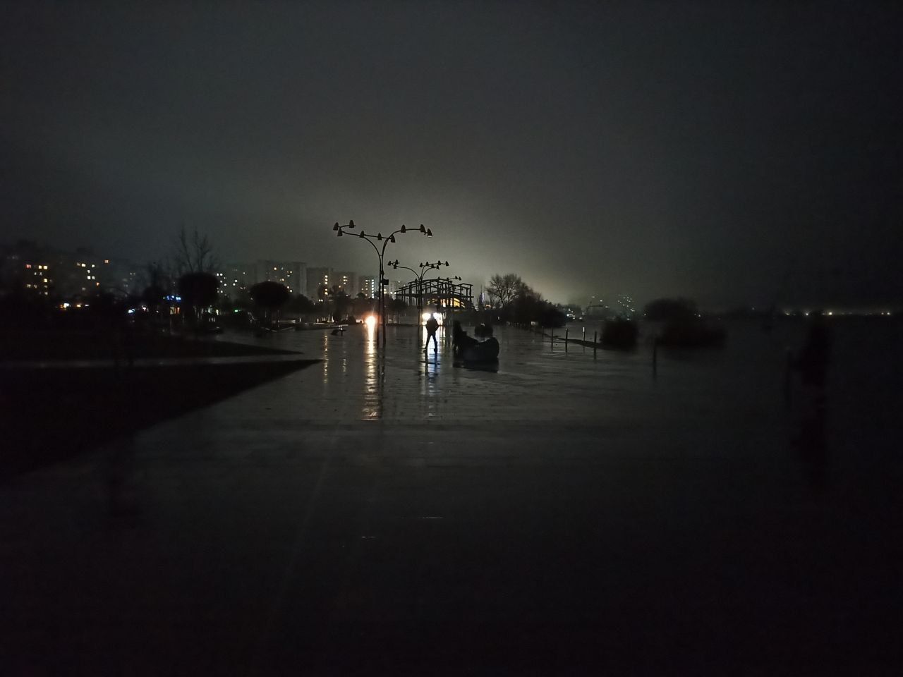 Так, набережна Дніпра та сквер "Прибережний" занурилися в темряву.