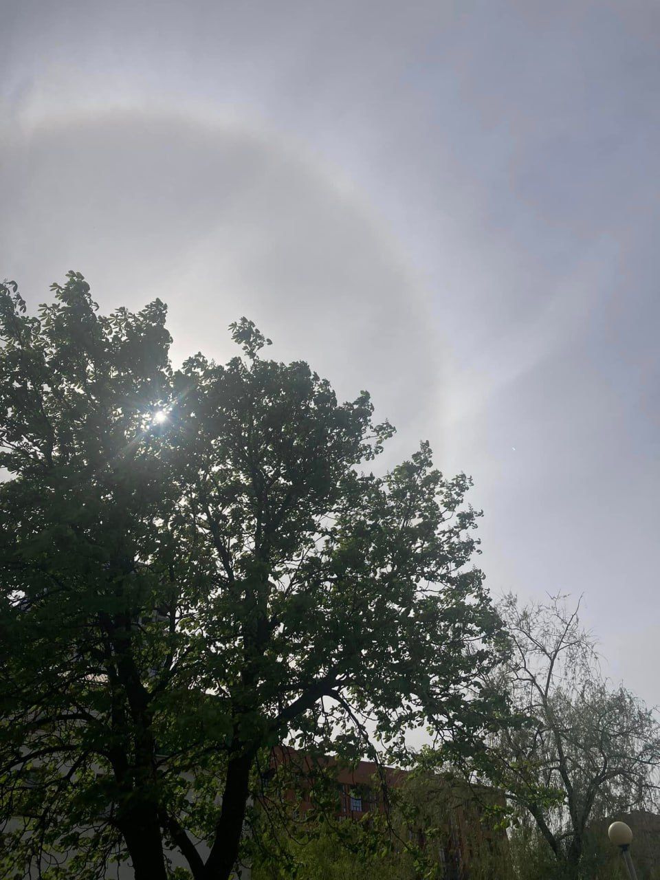 За прогнозами метеорологів у Дніпрі 15 квітня надвечір очікується дощ. Ймовірно, тому цими вихідними у небі над містом з'явилося гало, аби попередити про опади.