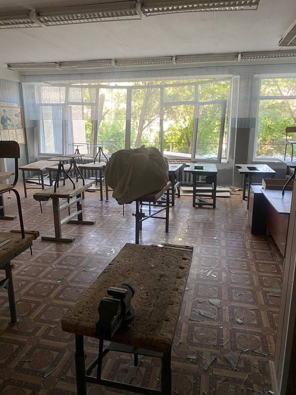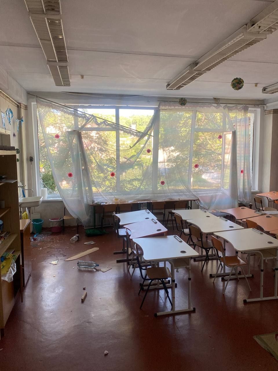 Класні кімнати також зазнали руйнувань. Вибуховою хвилею позносило карнизи, повиносило двері та порозкидало інвентар.