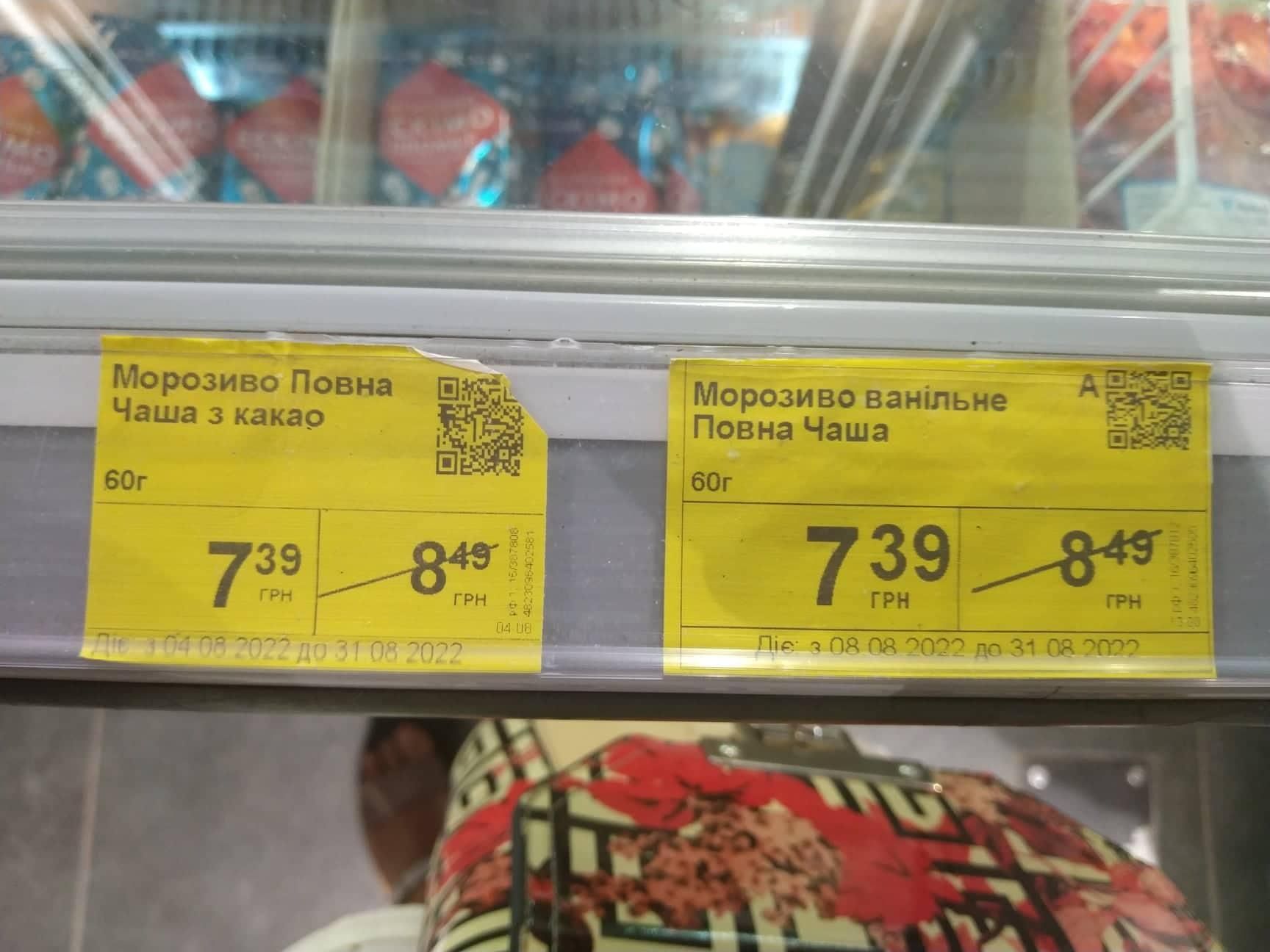 У торговій мережі «Сільпо» найдешевше морозиво продають за ціною 7,39 грн. за 60 грам. Щоправда, вартість його акційна і без знижки насолода коштуватиме 8,5 грн.