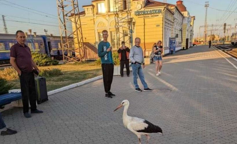 Не полетів на зимівлю, а тепер проводжає людей на вокзалі: лелека став зіркою П'ятихаток