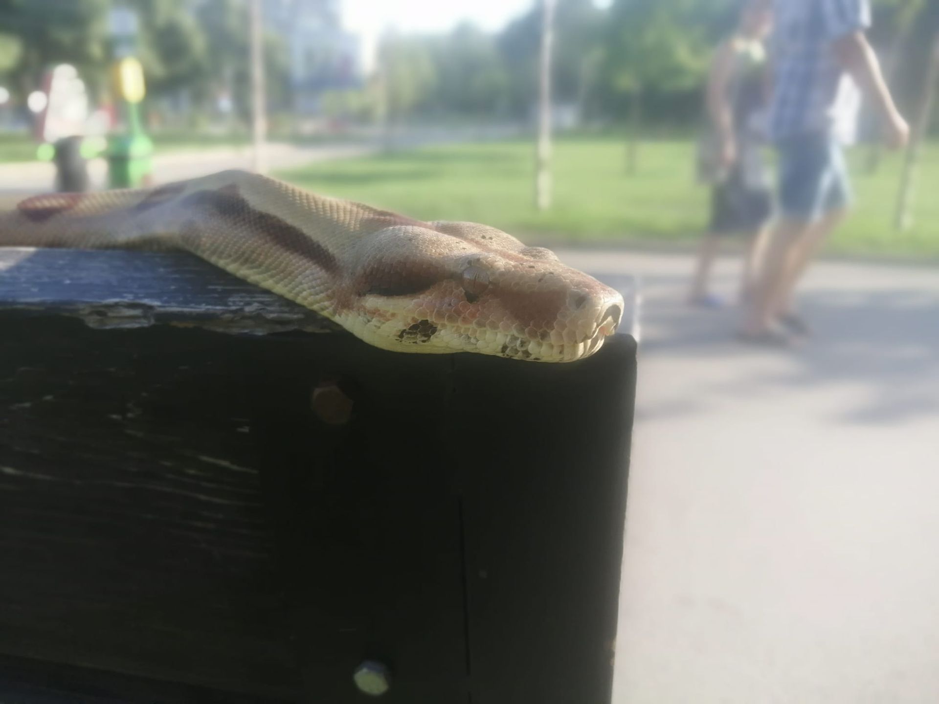 Жителі Дніпра стали свідками вигулу в одному зі скверів не собаки і не кота, а значно екзотичнішої тварини - удава.