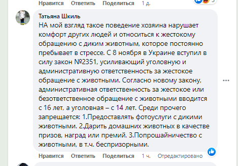 Інші, навпаки, негативно відреагували на це та написали, що у такий спосіб господиня змії порушує комфорт інших людей.