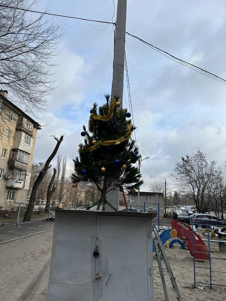 Прикрашали дерева мешканці мікрорайонів власноруч. У деяких дворах ялинки висаджені в землю, але є й штучні.