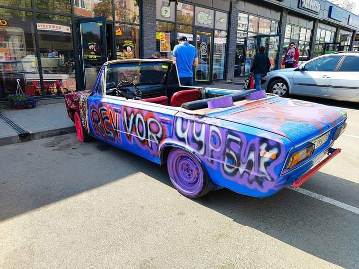 Ще одно авто в нашій добірці – це саморобний кабріолет. І якщо інші машини були обклеїни плівкою, то ця – розмальована невідомим художником. Виглядає дуже незвично. Побачивши це авто на вулицях міста – не можливо пройти повз та не сфотографувати його.