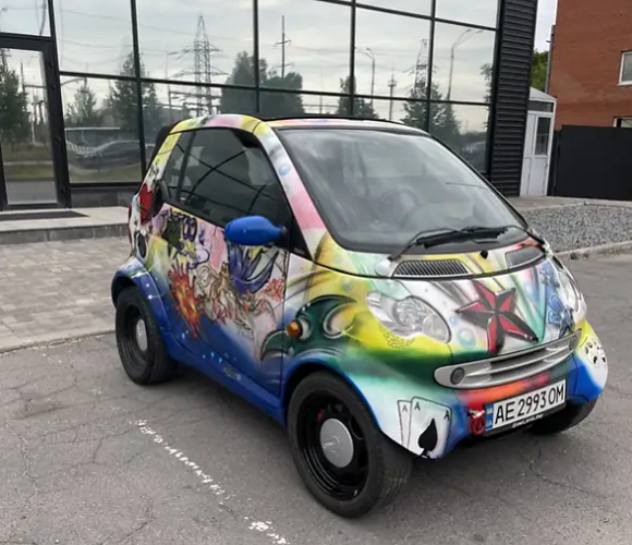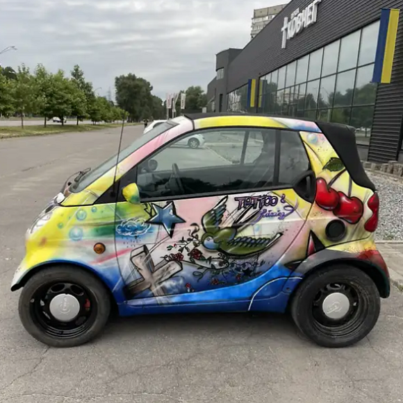 Також неможливо не запам'ятати цей маленький Smart. Підійшовши до машини ближче, так і хочеться розглянути всі малюнки на кузові.
