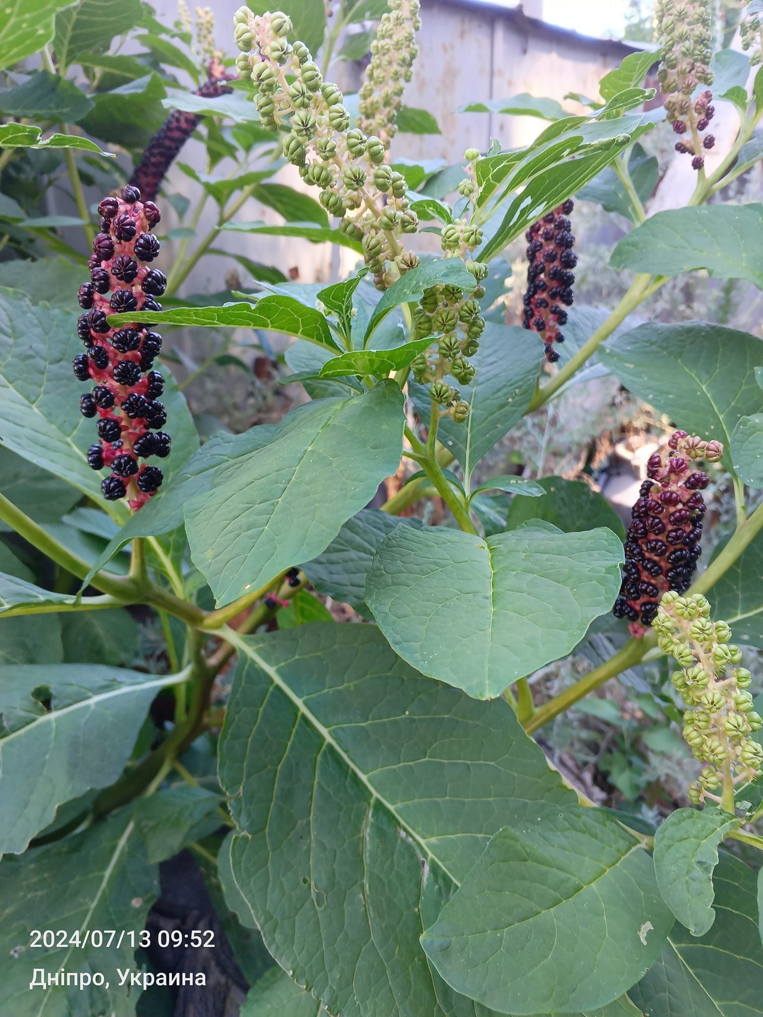 Відцвів і поспіває. Цю рослину називають лаконос. Красиві плоди, неначе вкриті лаком. Кажуть що з них виготовляють ліки. Якимось чином з'явився на нашій території, - пише місцевий житель Олексій у Facebook-спільноті "Лівобережний-3".