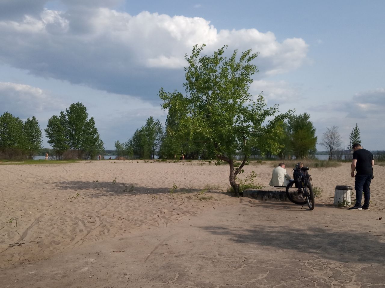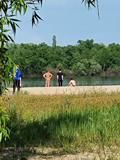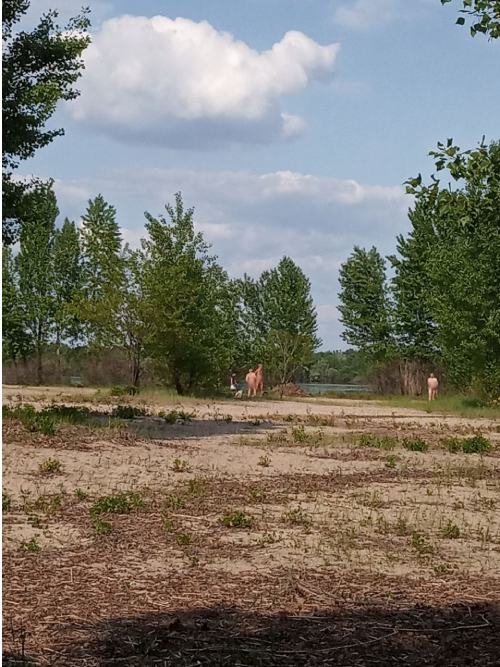 Більшість нудистів засмагає біля води, за кущами з пішохідної алеї їх не видно, але деякі розташувалися на піску. Вони не бояться перехожих. Та гуляючі парком рідко сюди доходять. У вихідні тут традиційно більше, у будні – рідко кого можна зустріти.