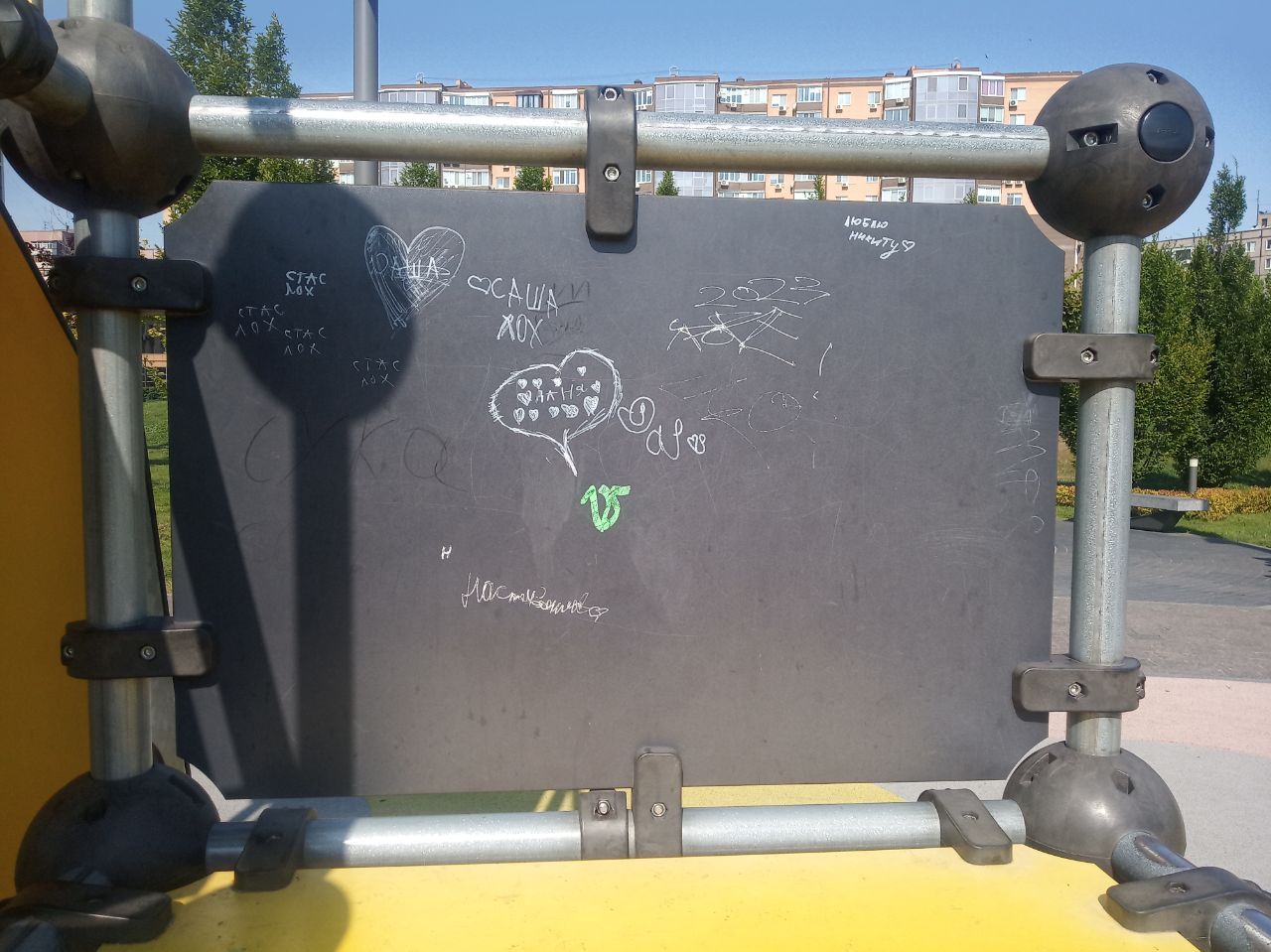 Шановні містяни, якщо ви побачили, як вандали псують щось на дитячому майданчику, зробіть зауваження, або краще викликайте поліцію!