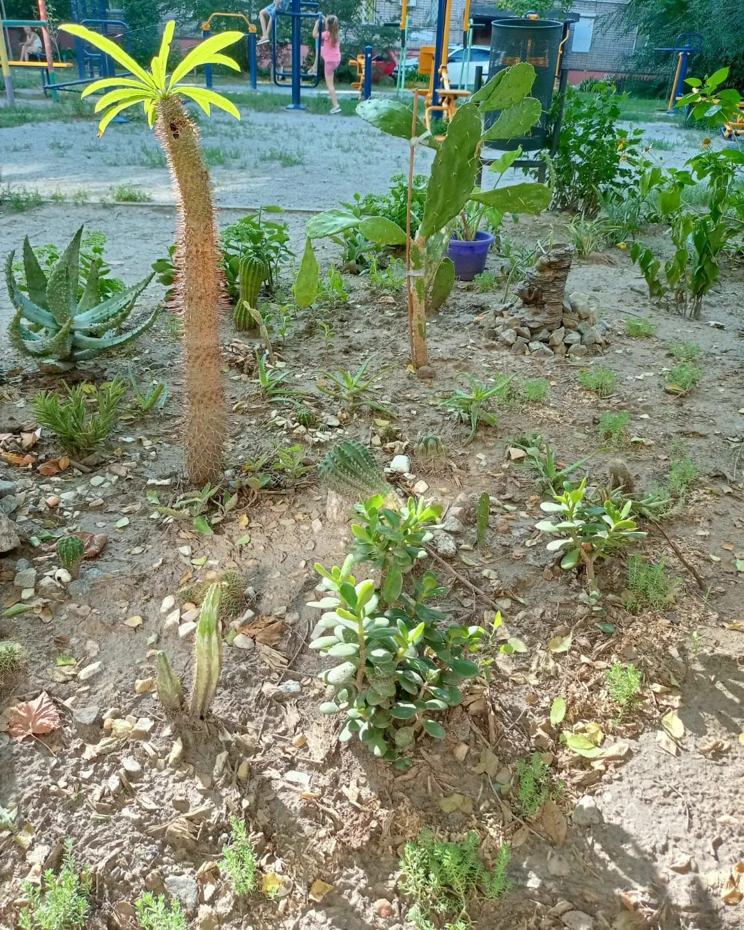 Пальми і кактуси: у Дніпрі у дворі багатоповерхівки висадили тропічний сад