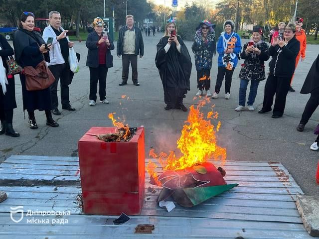 Як розповіли у міськраді Дніпра, у парку Глоби сьогодні відзначали Хелловін. Учасники "Університету третього віку" влаштували квест "Чаклуємо для перемоги. Спалення Крємля".
