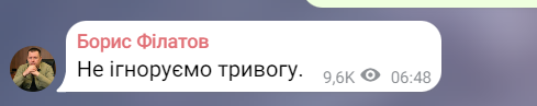 Мер Дніпра Борис Філатов також закликав не ігнорувати тривогу!