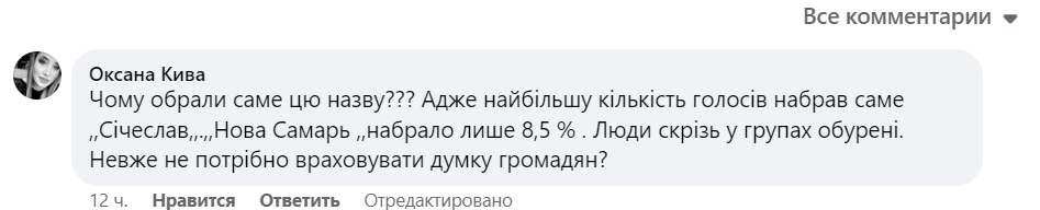 Люди запитують, чому саме Нова Самарь, адже за неї проголосувало мало містян, та просять обґрунтувати цю зміну. Інші зазначають, що їм не подобається. А Ольга Краснікова навіть знайшла у новій назві орфографічну помилку.