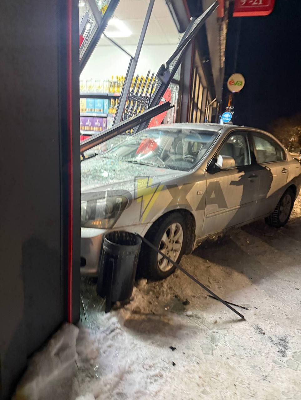 За попередніми даними, водій легковика, ймовірно, через слизьку дорогу втратив контроль над транспортним засобом та здійснив зіткнення з магазином, в якому продають алкоголь. В результаті ДТП скло магазину розбилося, також потрощені пляшки з алкогольними напоями. Усі деталі аварії будуть з'ясовувати правоохоронці. Про постраждалих не повідомляється.