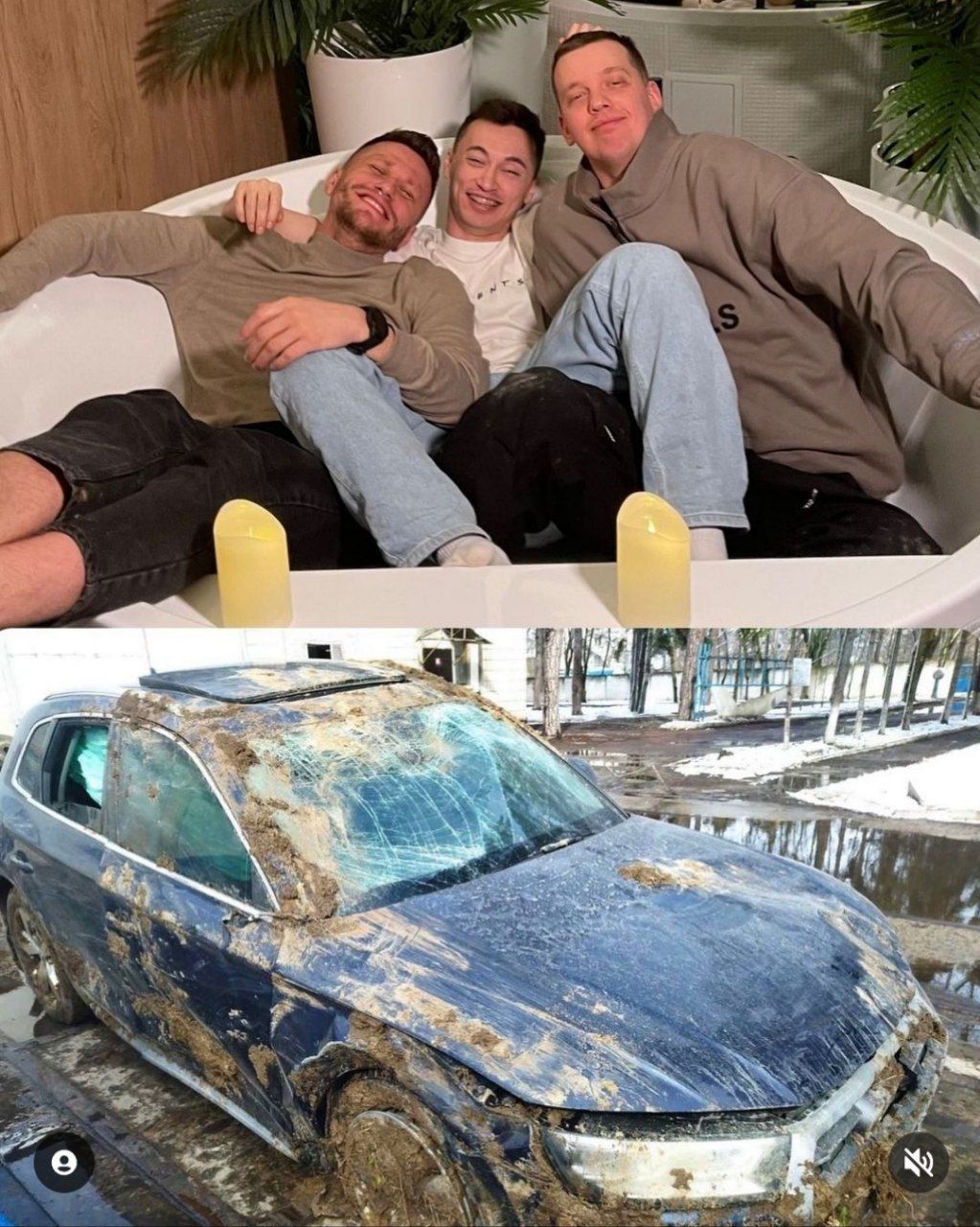 “Відтепер втрьох святкуємо ще один день народження 11 березня. Насправді все не так страшно, як на фото) навіть синців немає. Перше, що сказав Микола, коли ми вилізли: Вальок, за 27 заберу”, — жартівливо прокоментував ситуацію Валентин.