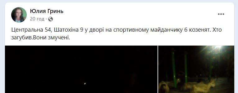 Шістьох змучених кіз помітила містянка Юлія та опублікували в Facebook допис, щоб спробувати знайти господарів чотирилапих.